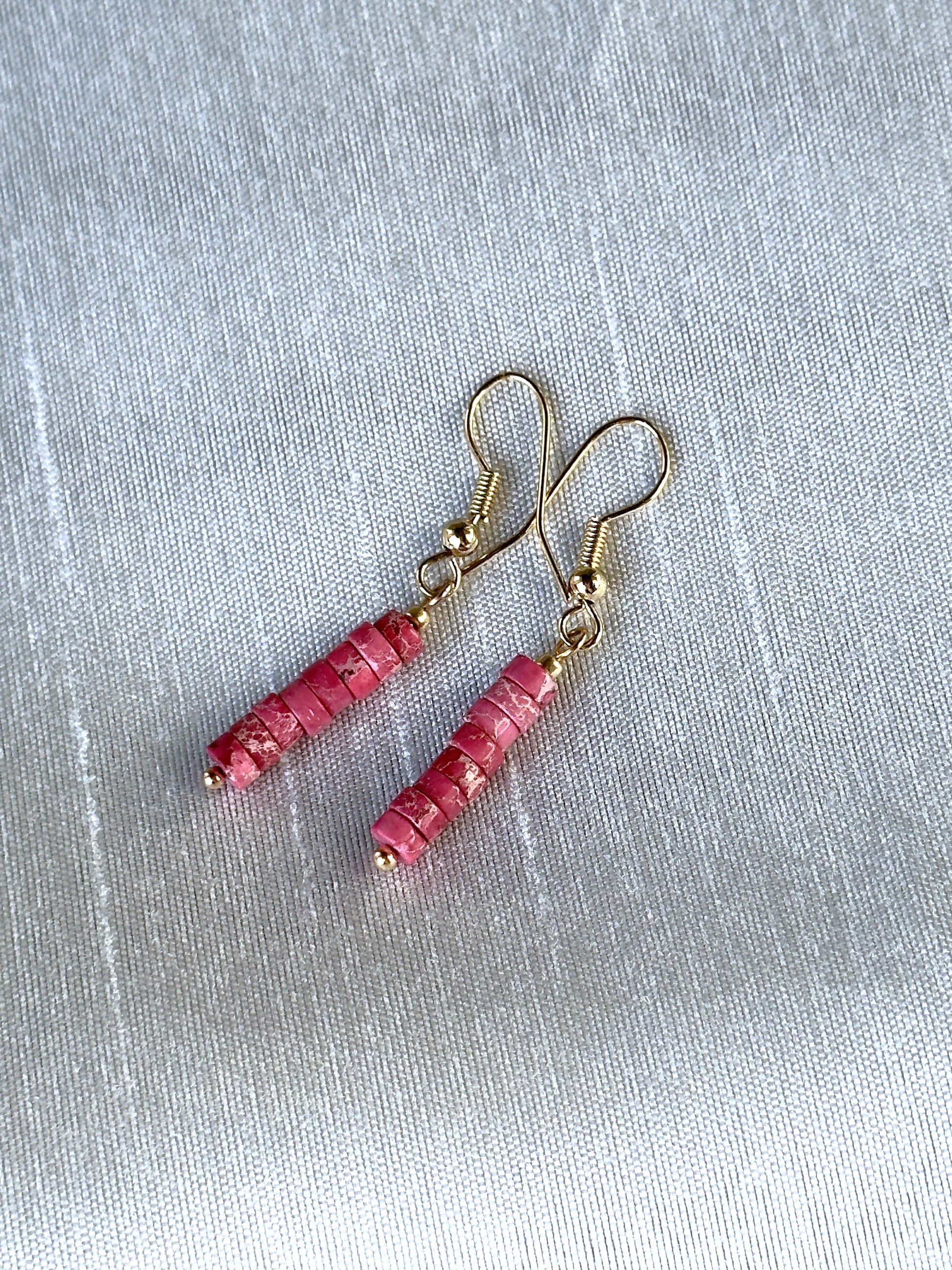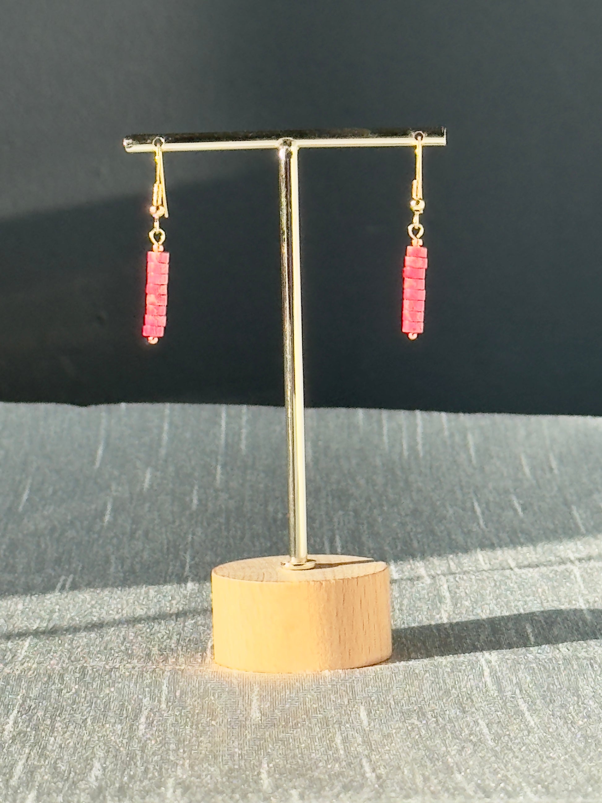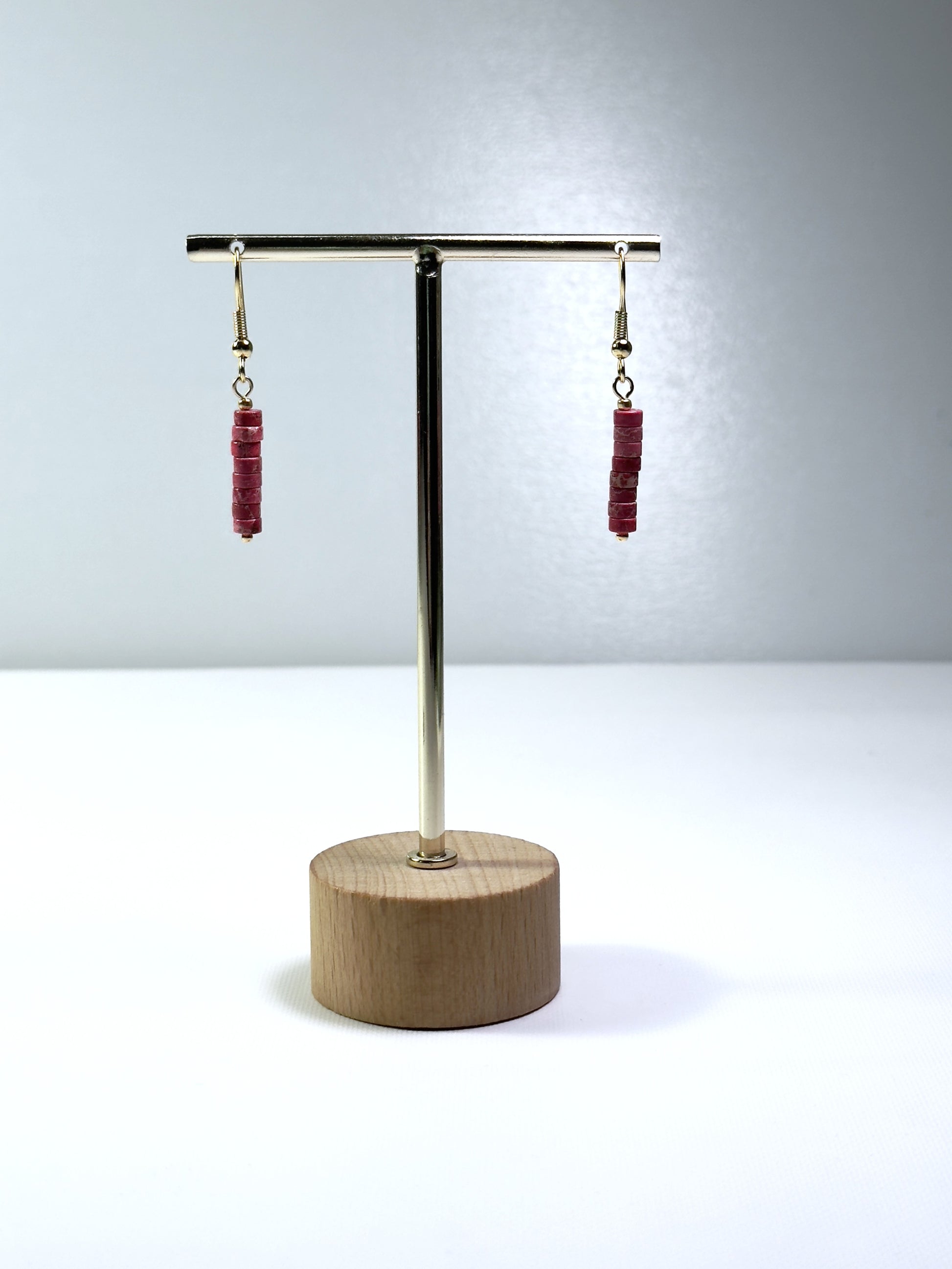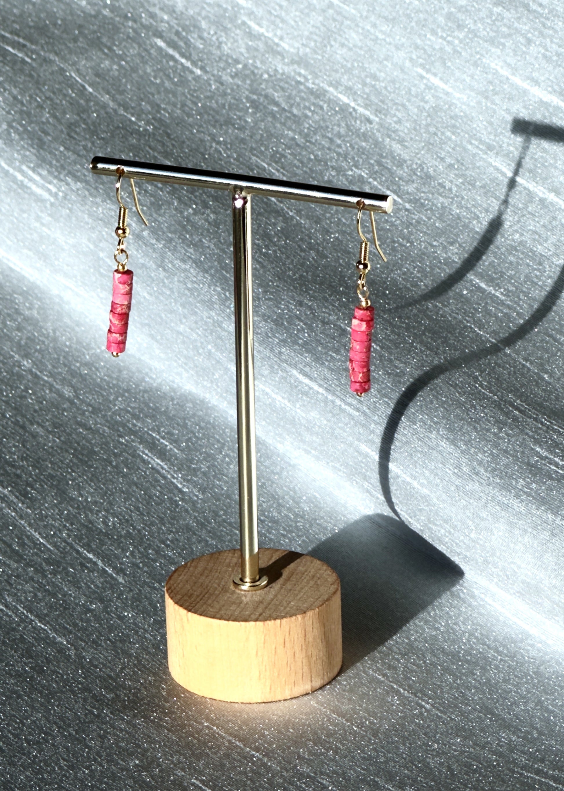 Sobres et élégantes, ces boucles d’oreilles en forme de barrettes sont façonnées à partir de jaspe rouge naturel. Leur silhouette allongée souligne le port de tête avec caractère et raffinement.
