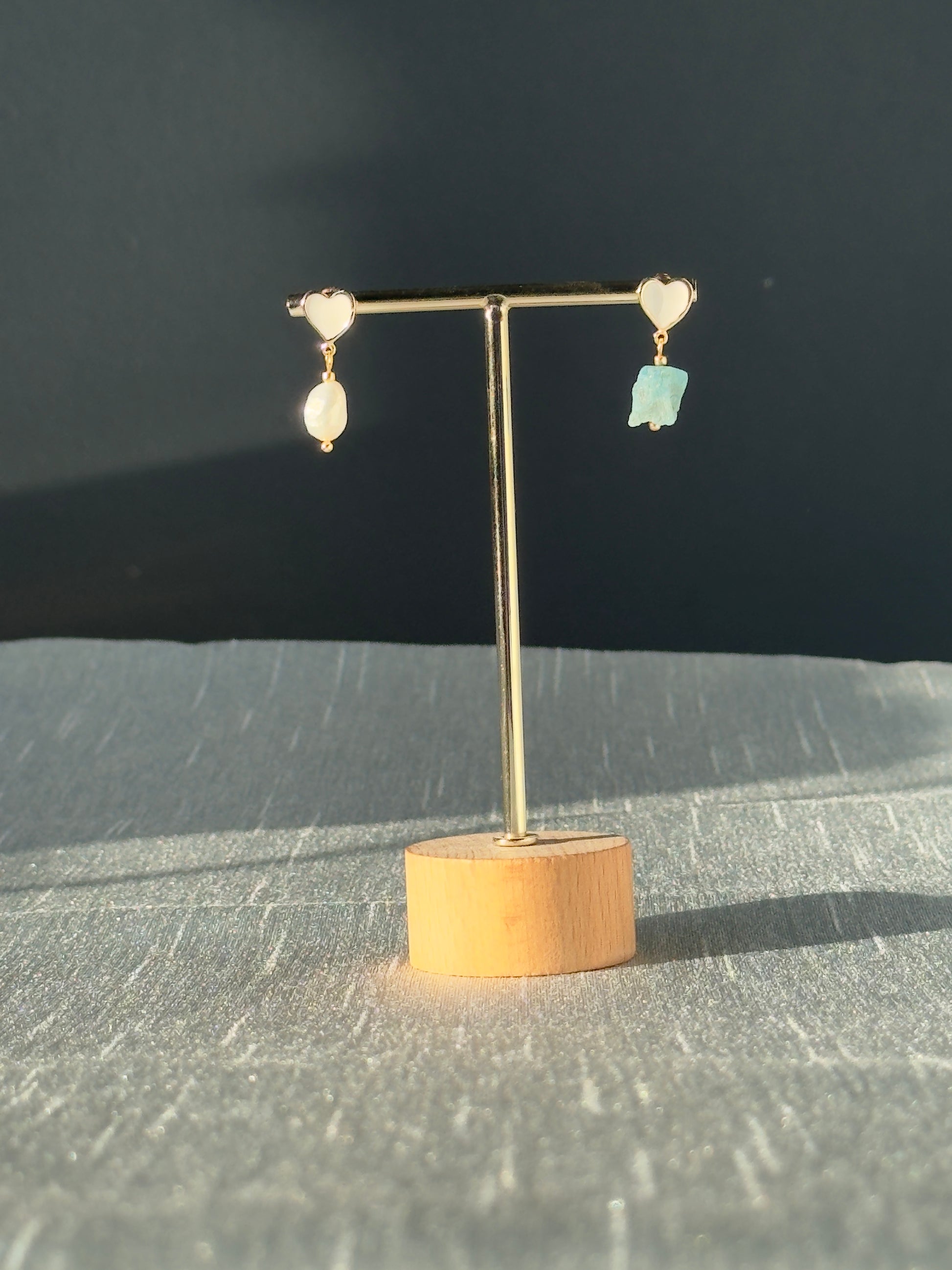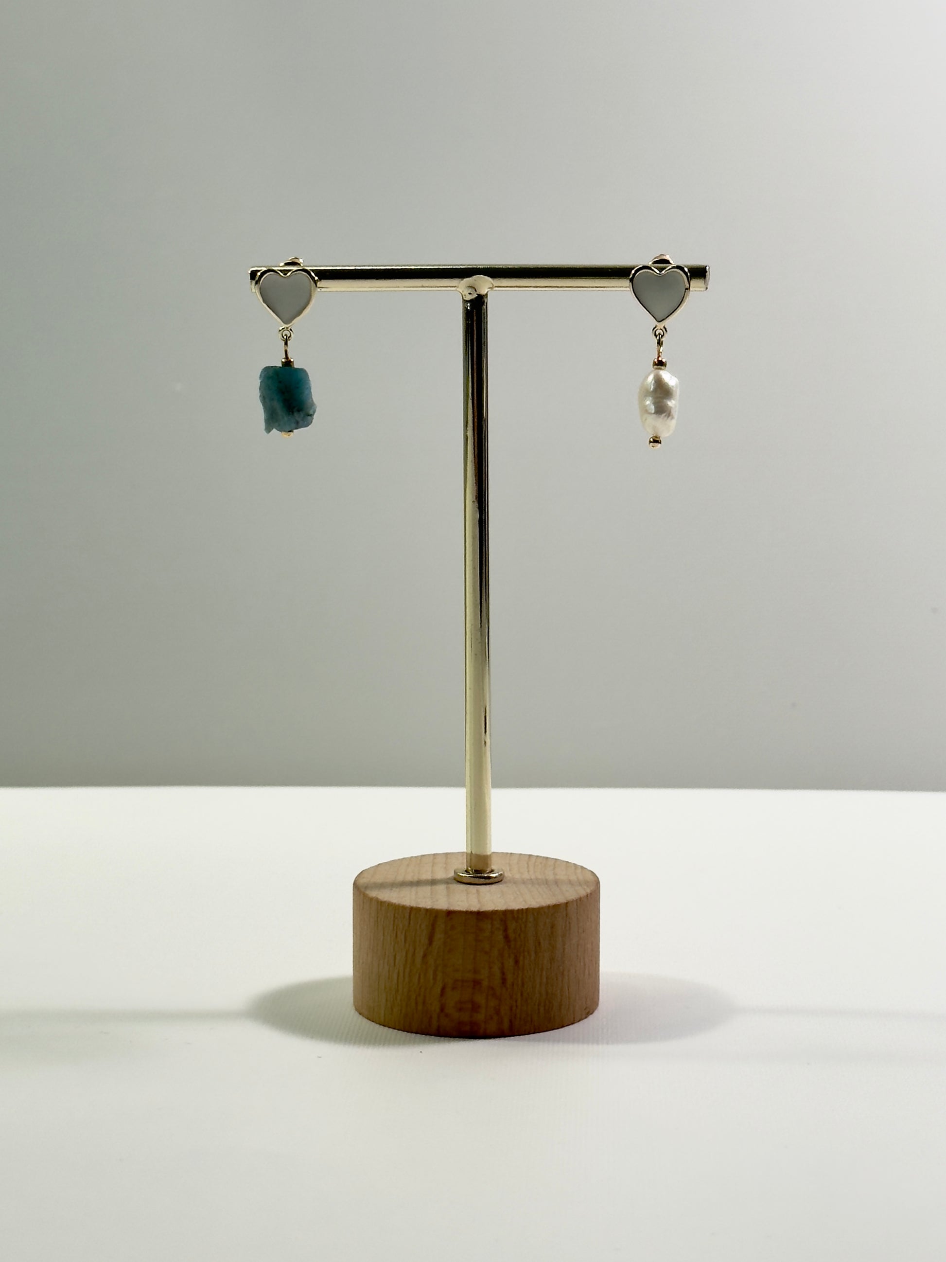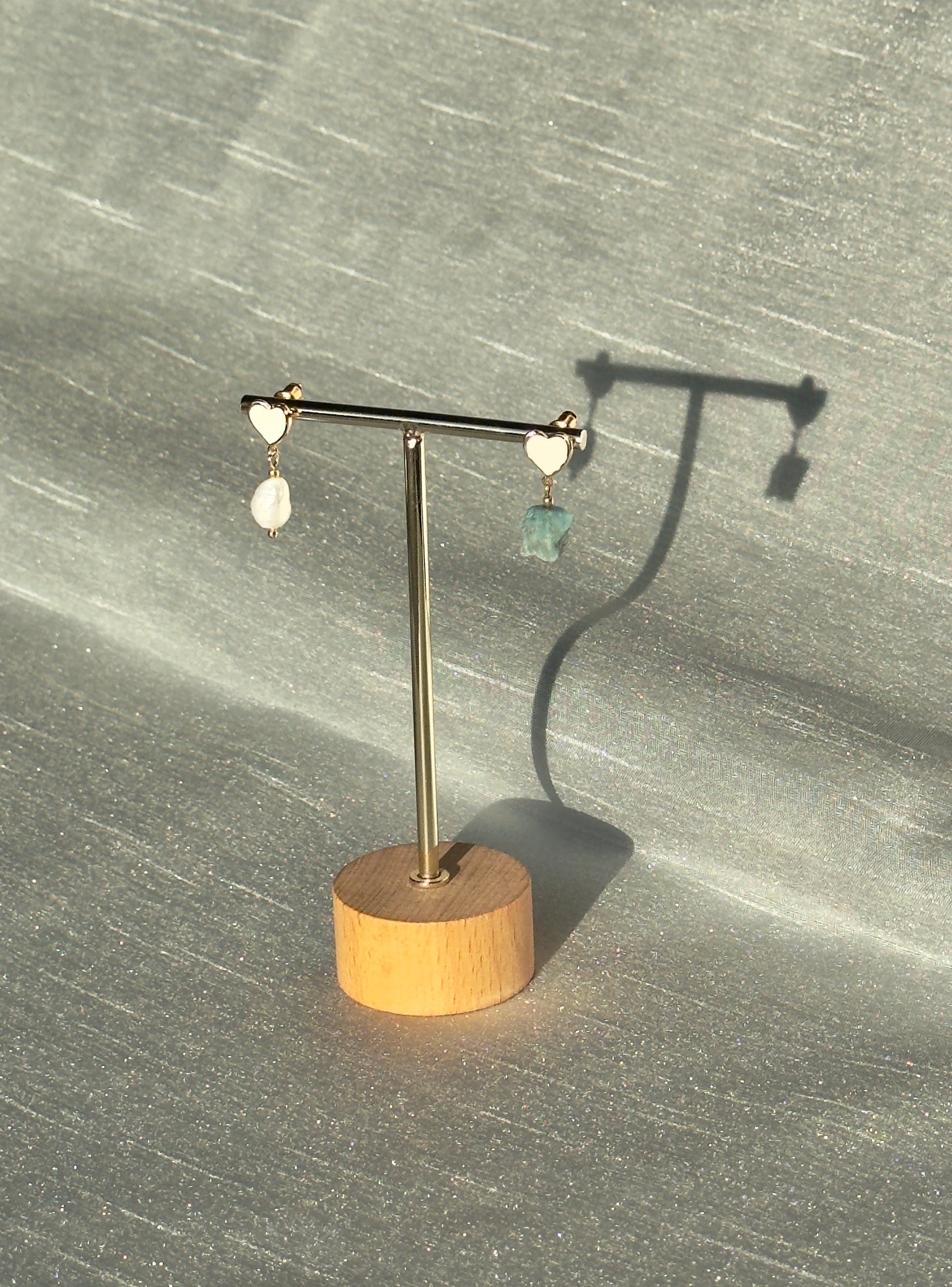 Boucles d’oreilles cœur avec perle et apatite brute