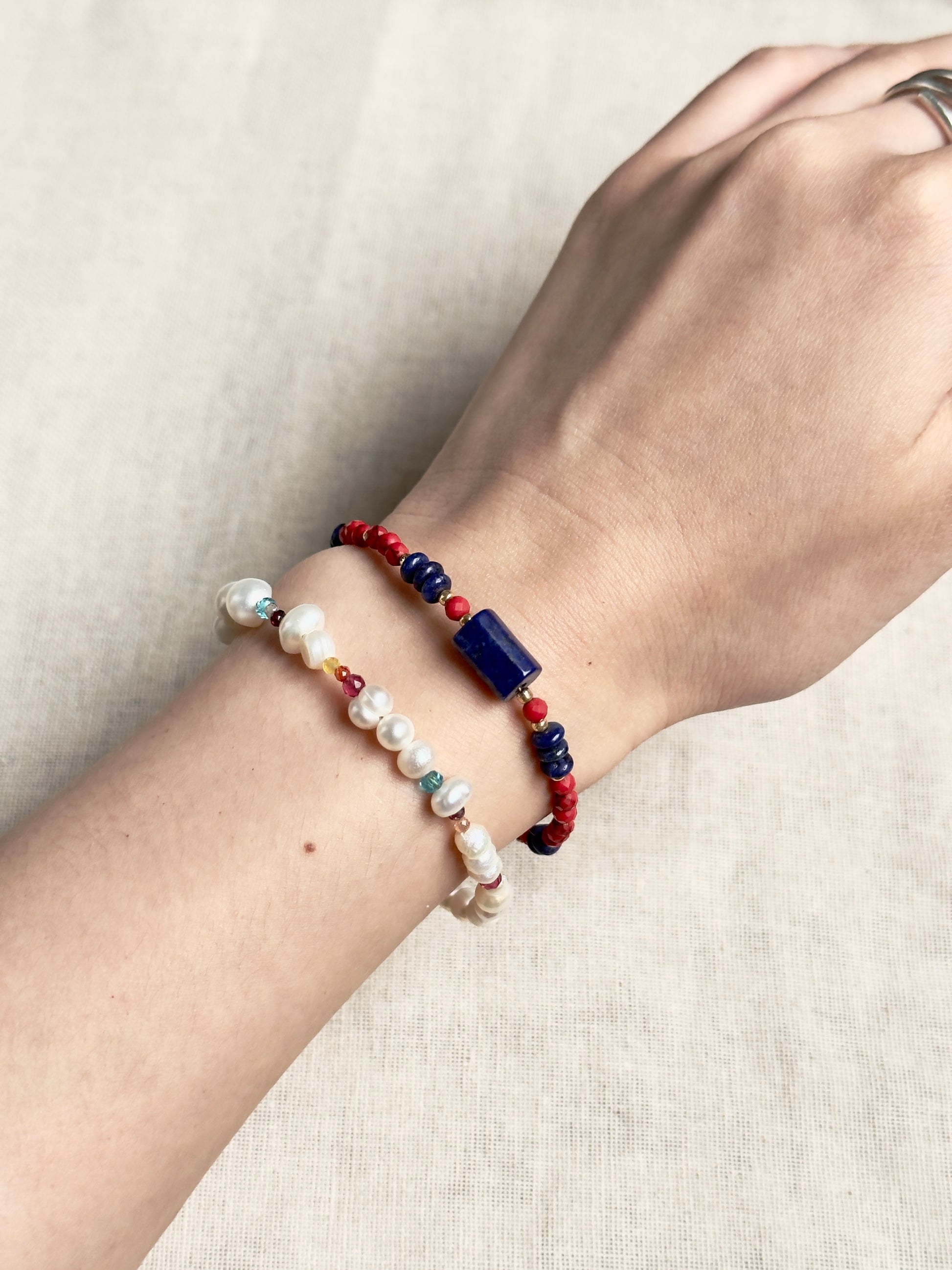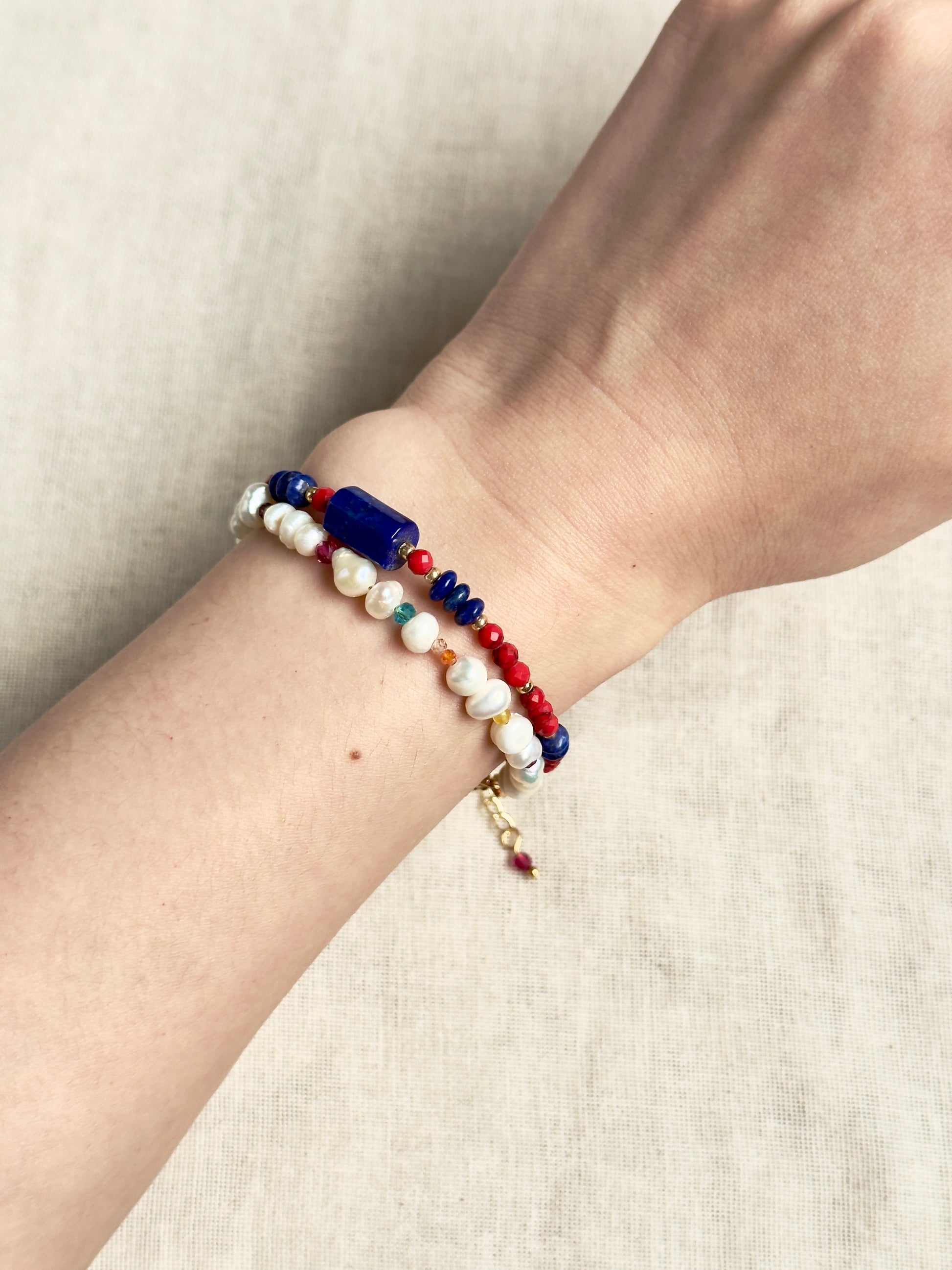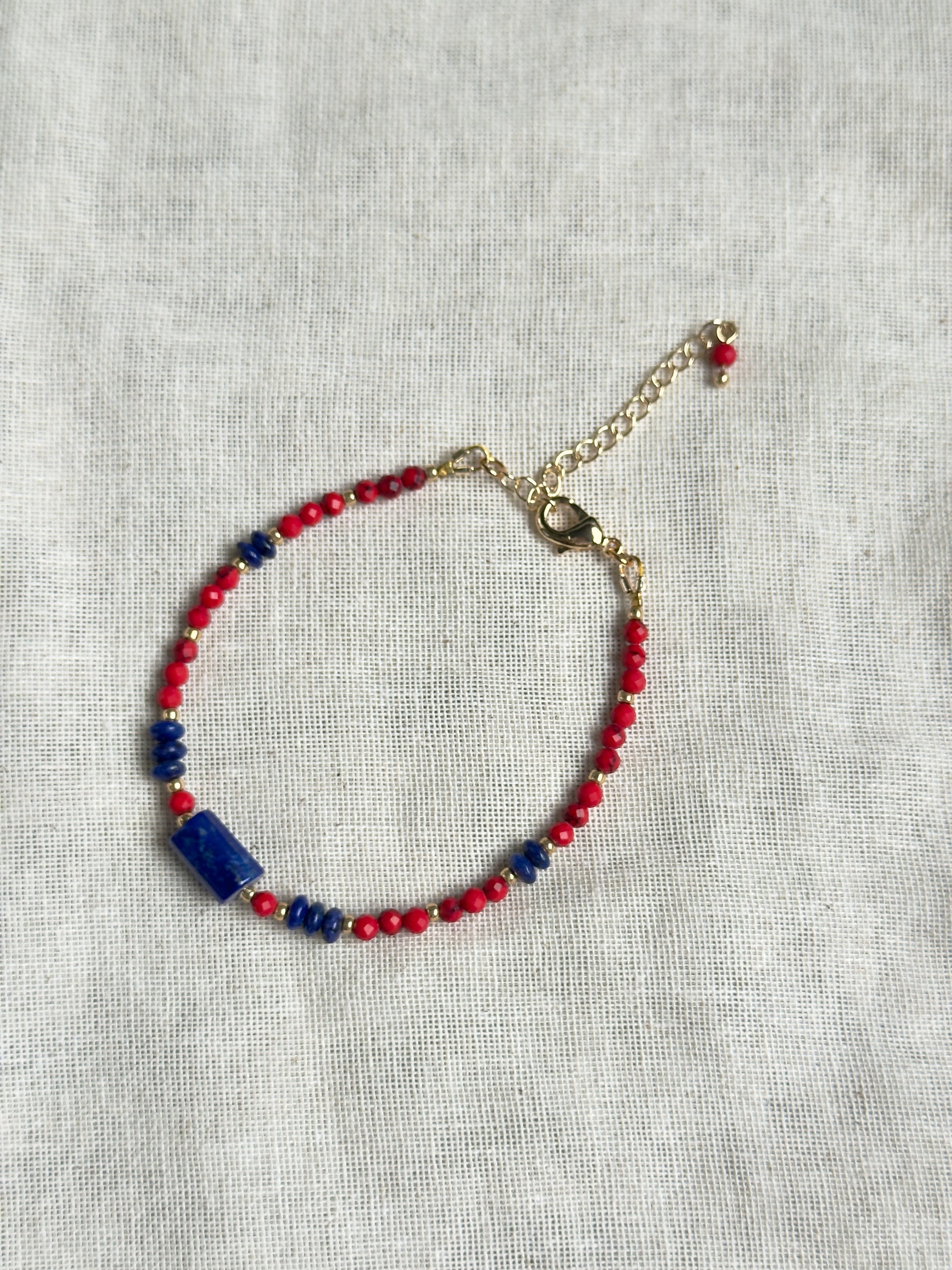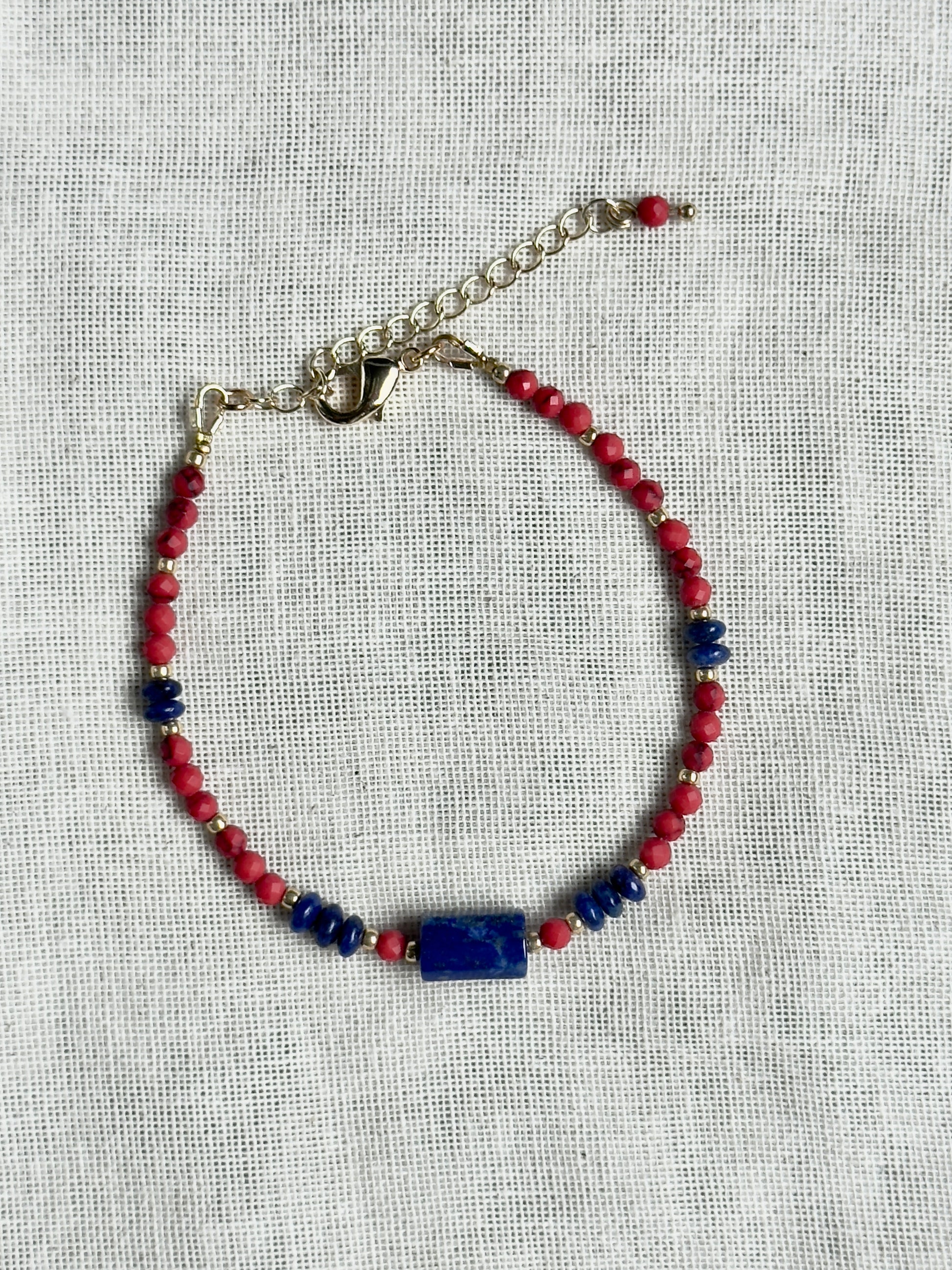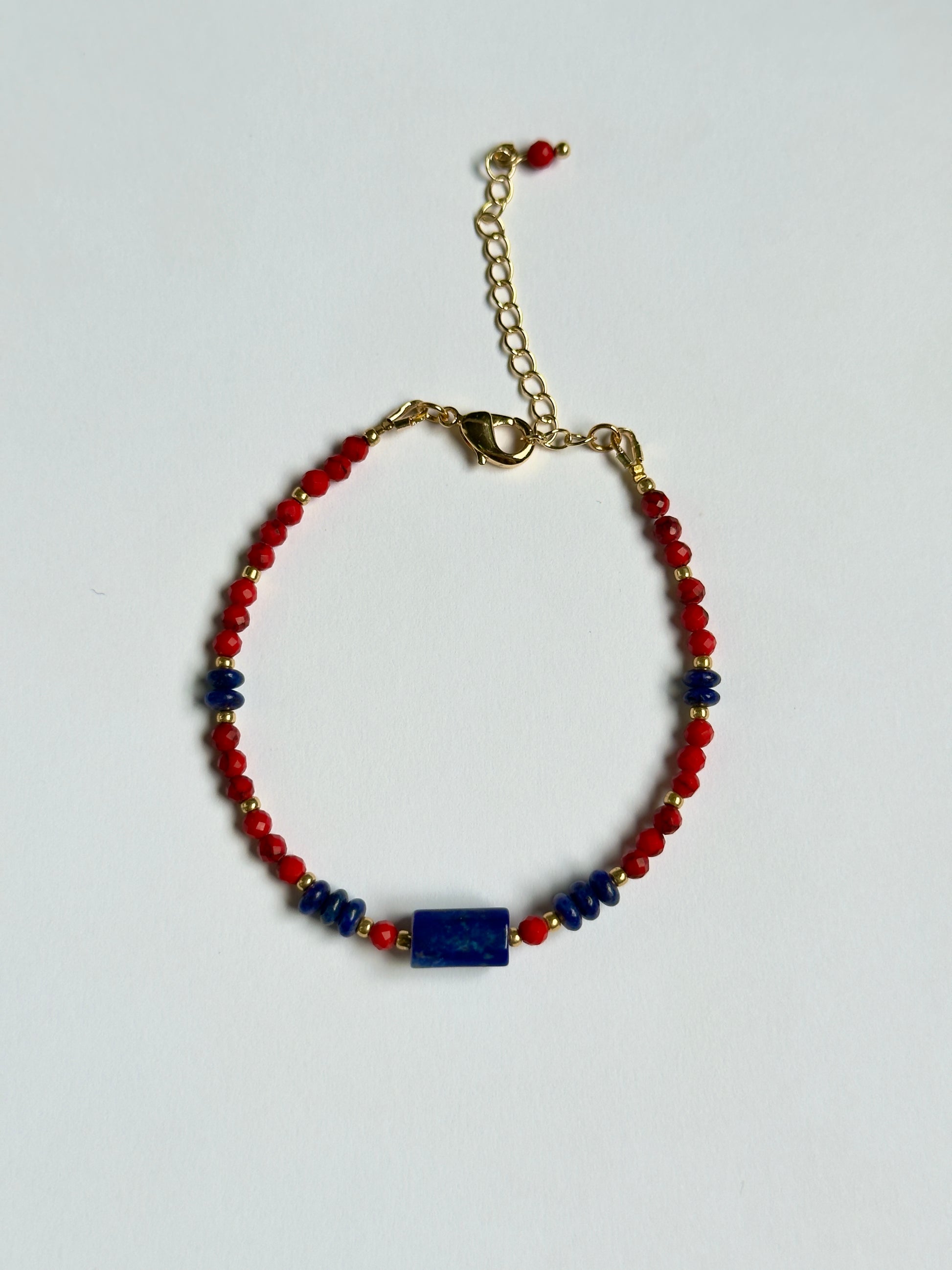 🇺🇸 Red Coral and Lapis Lazuli Bracelet