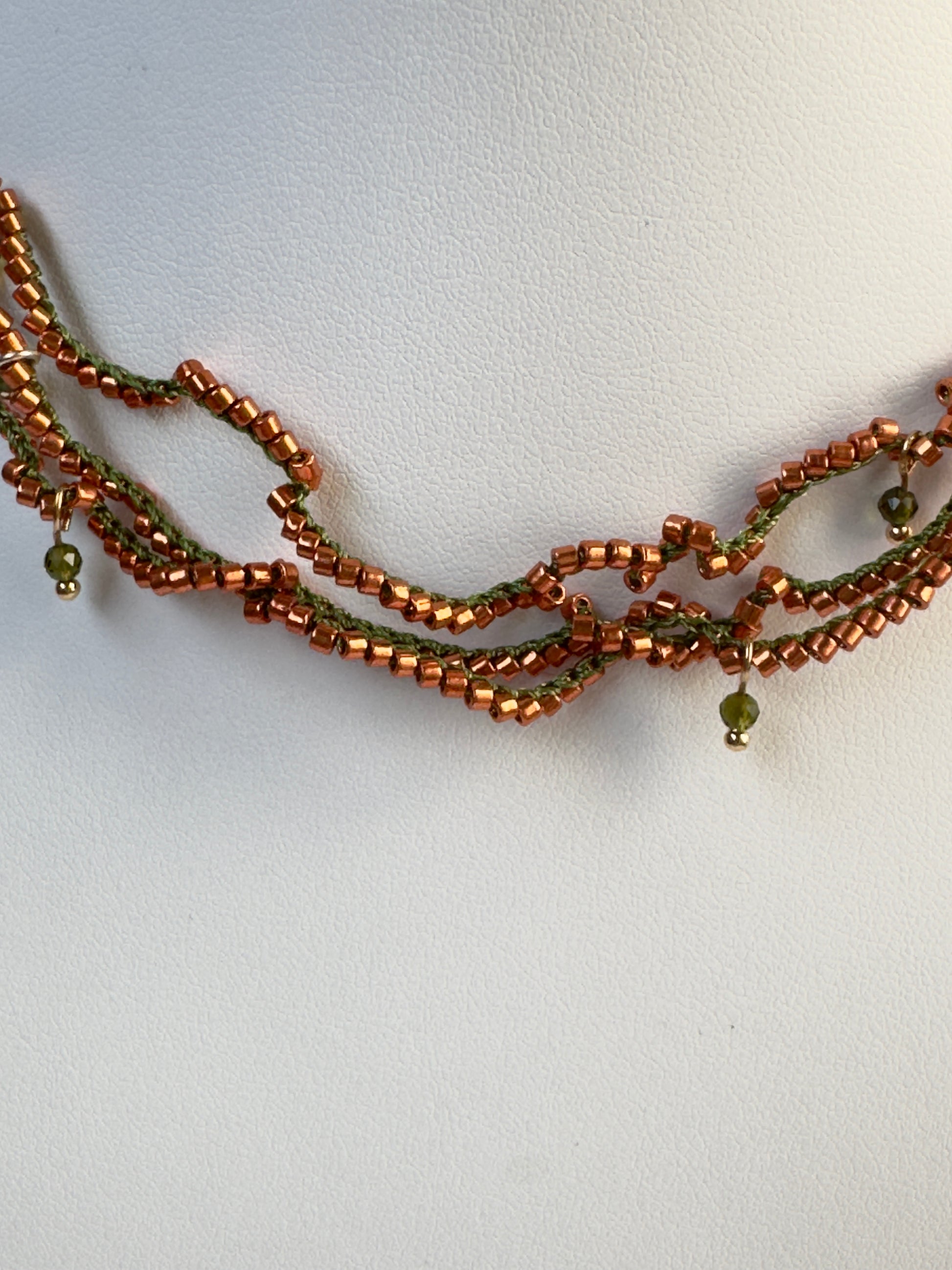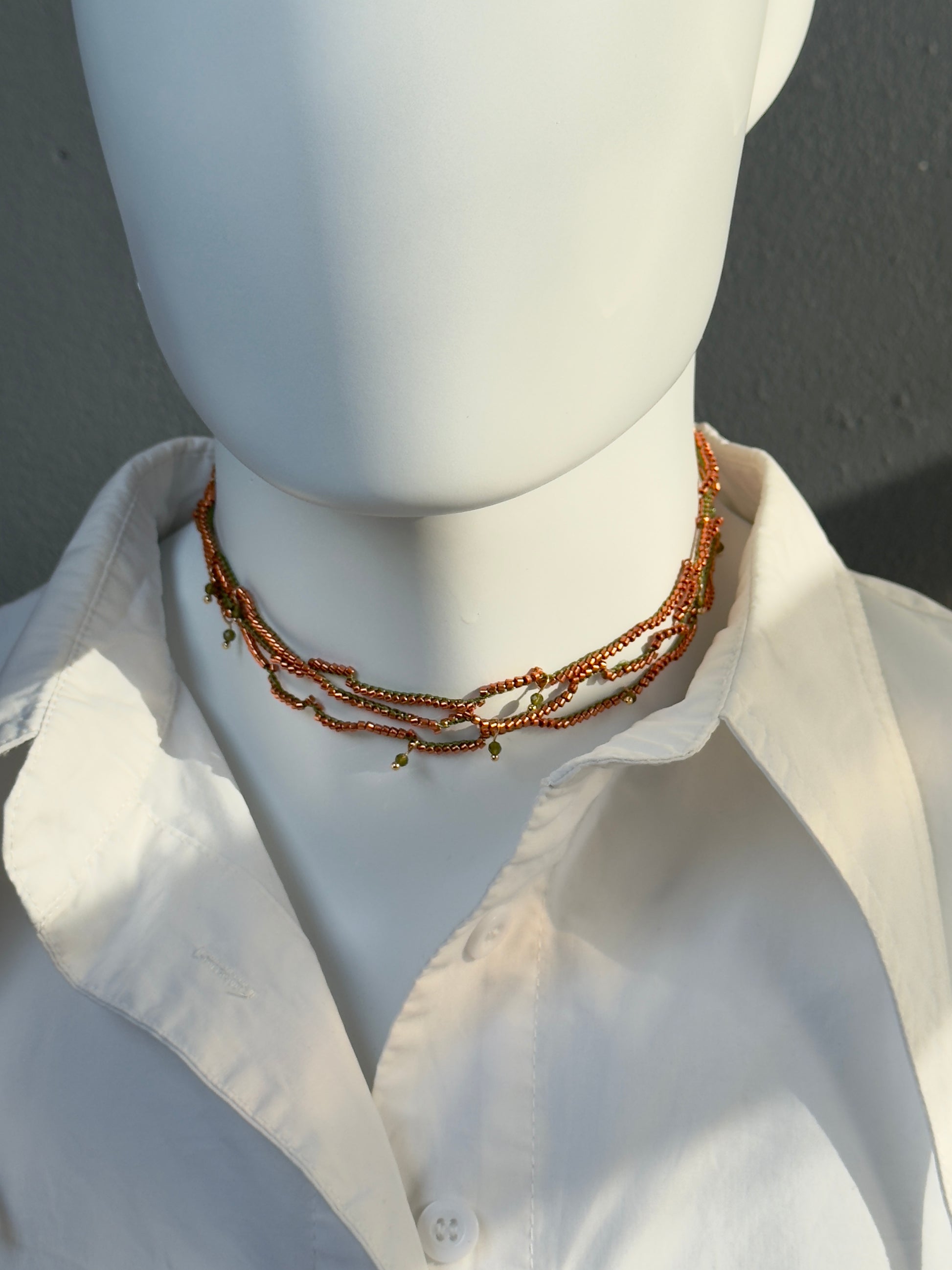 Choker perles orange et fil vert