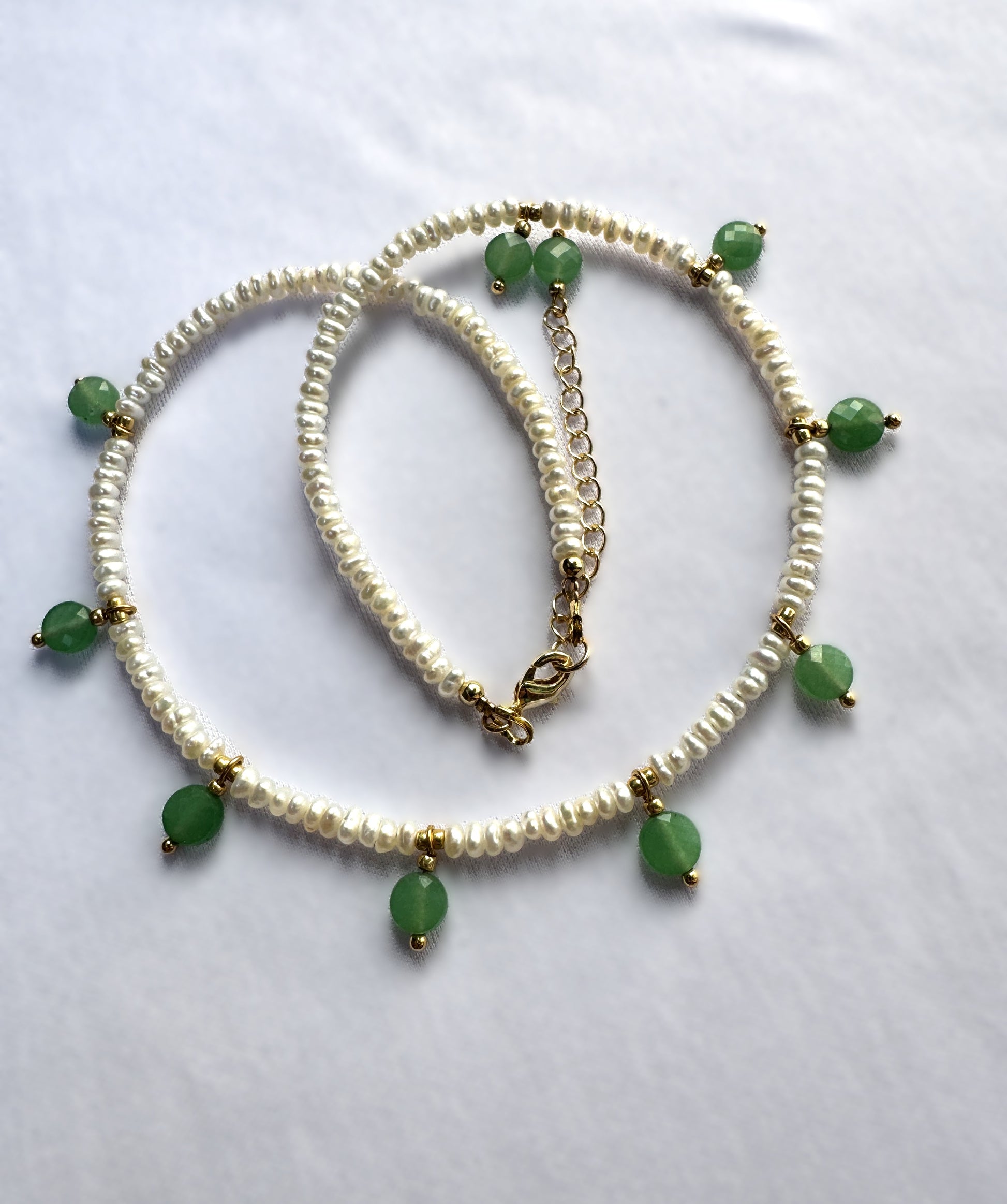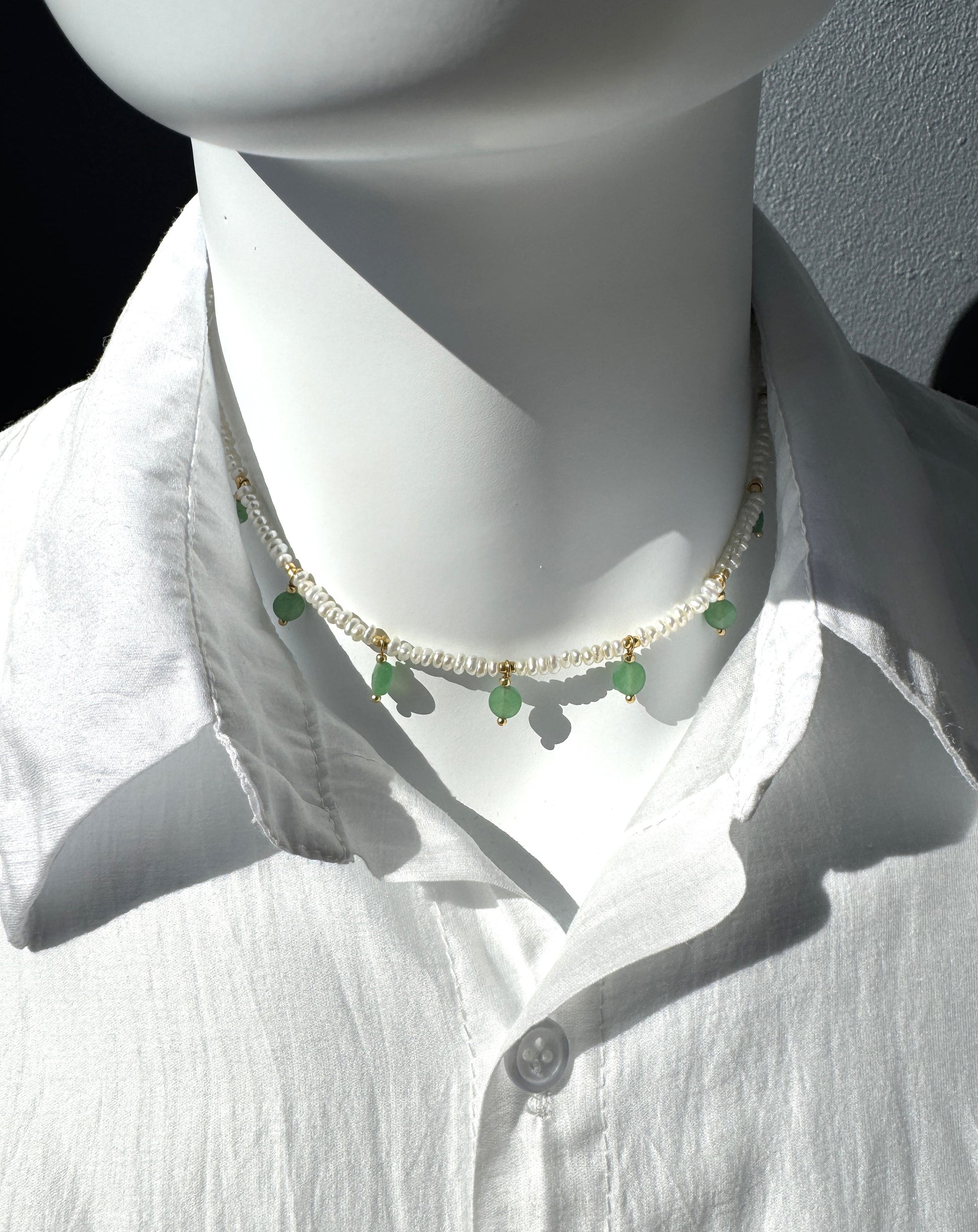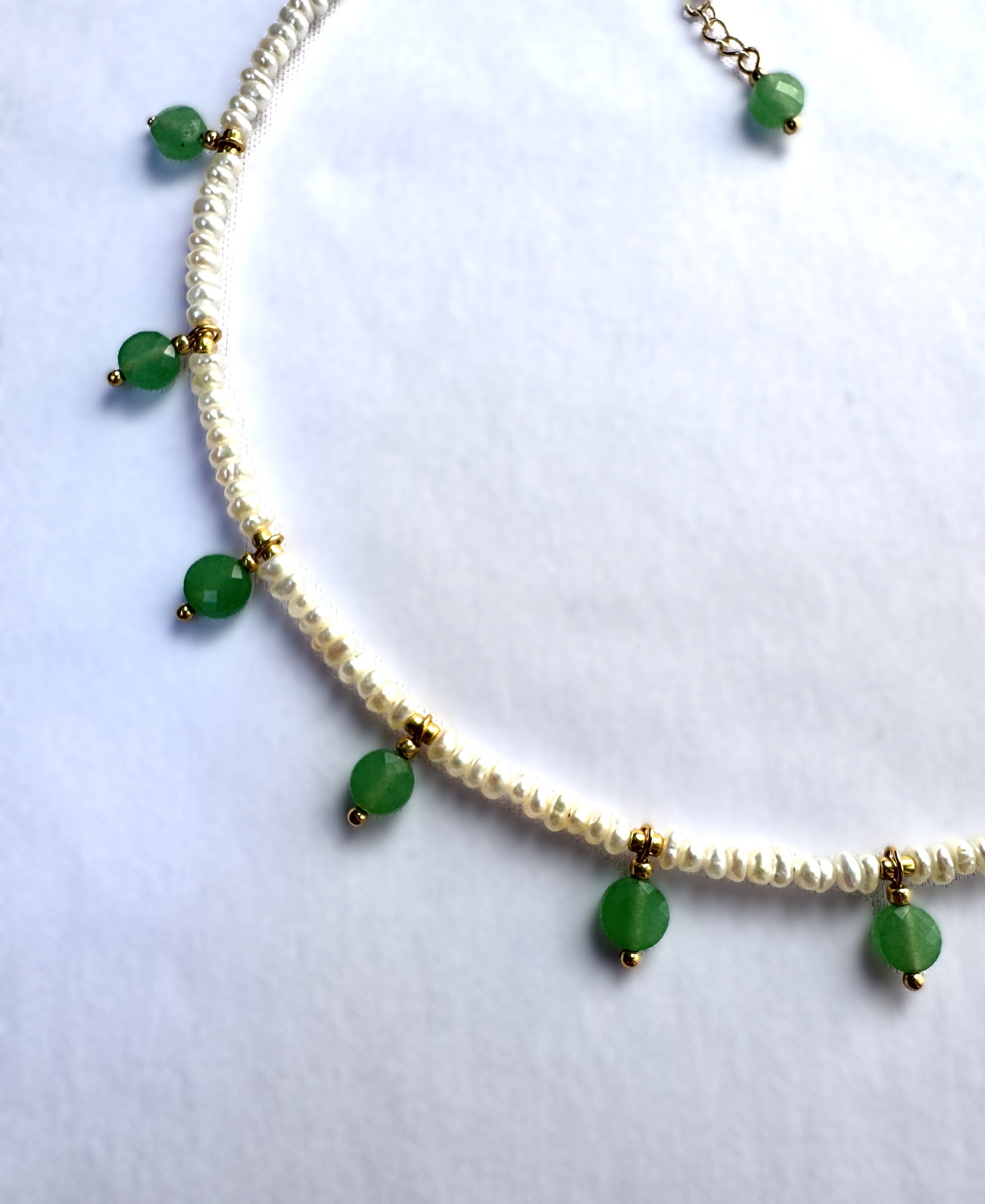 L’éclat doux des perles et la force naturelle du jade réunis dans un bijou simple et harmonieux, à porter au quotidien.