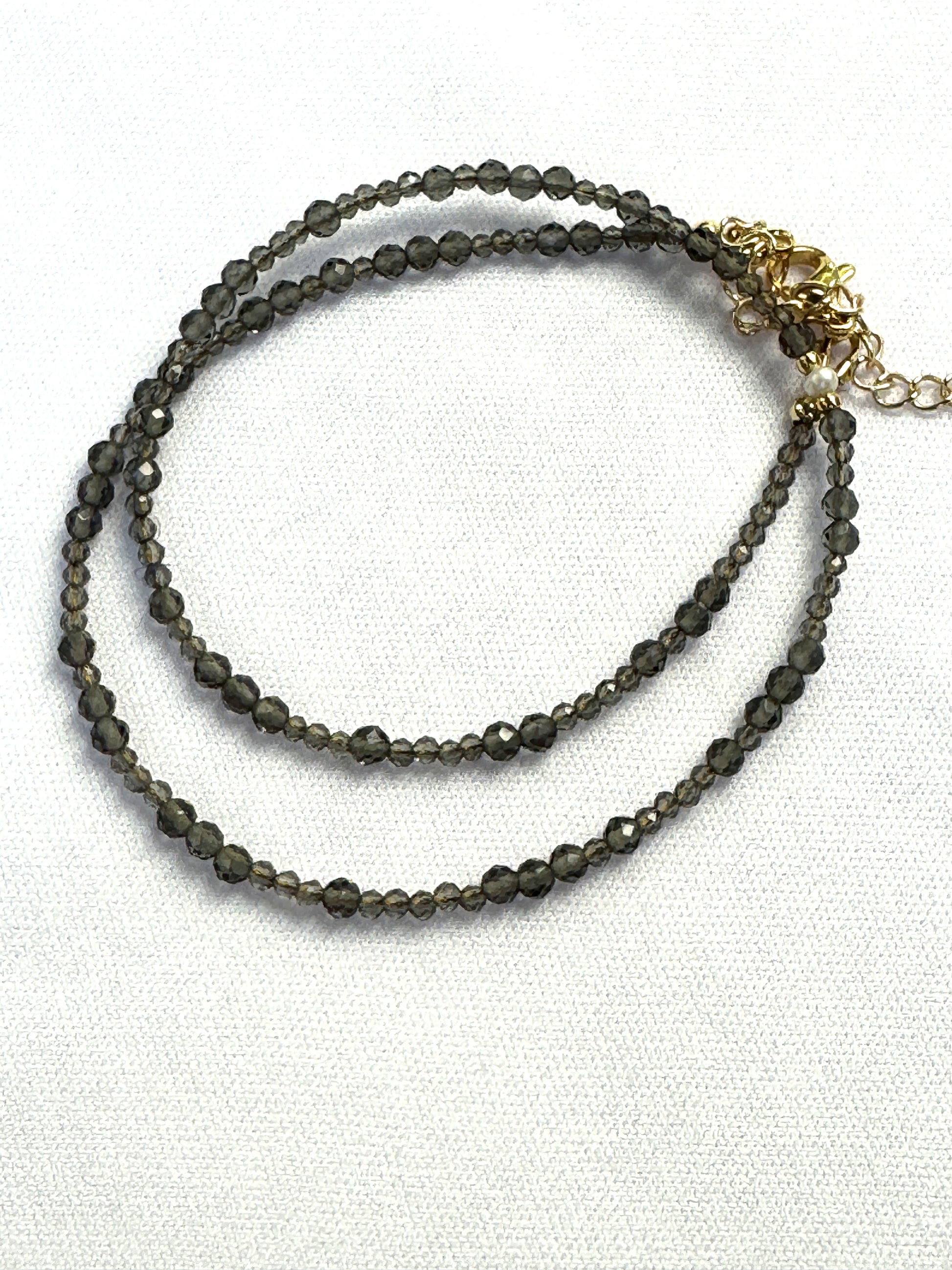 💎 Pierres : spinelle gris (2 et 3 mm), perle d’eau douce